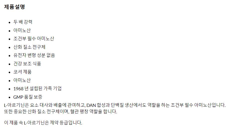 설명을 보면 역시 조건부 필수 아미노산이라고 되어있고