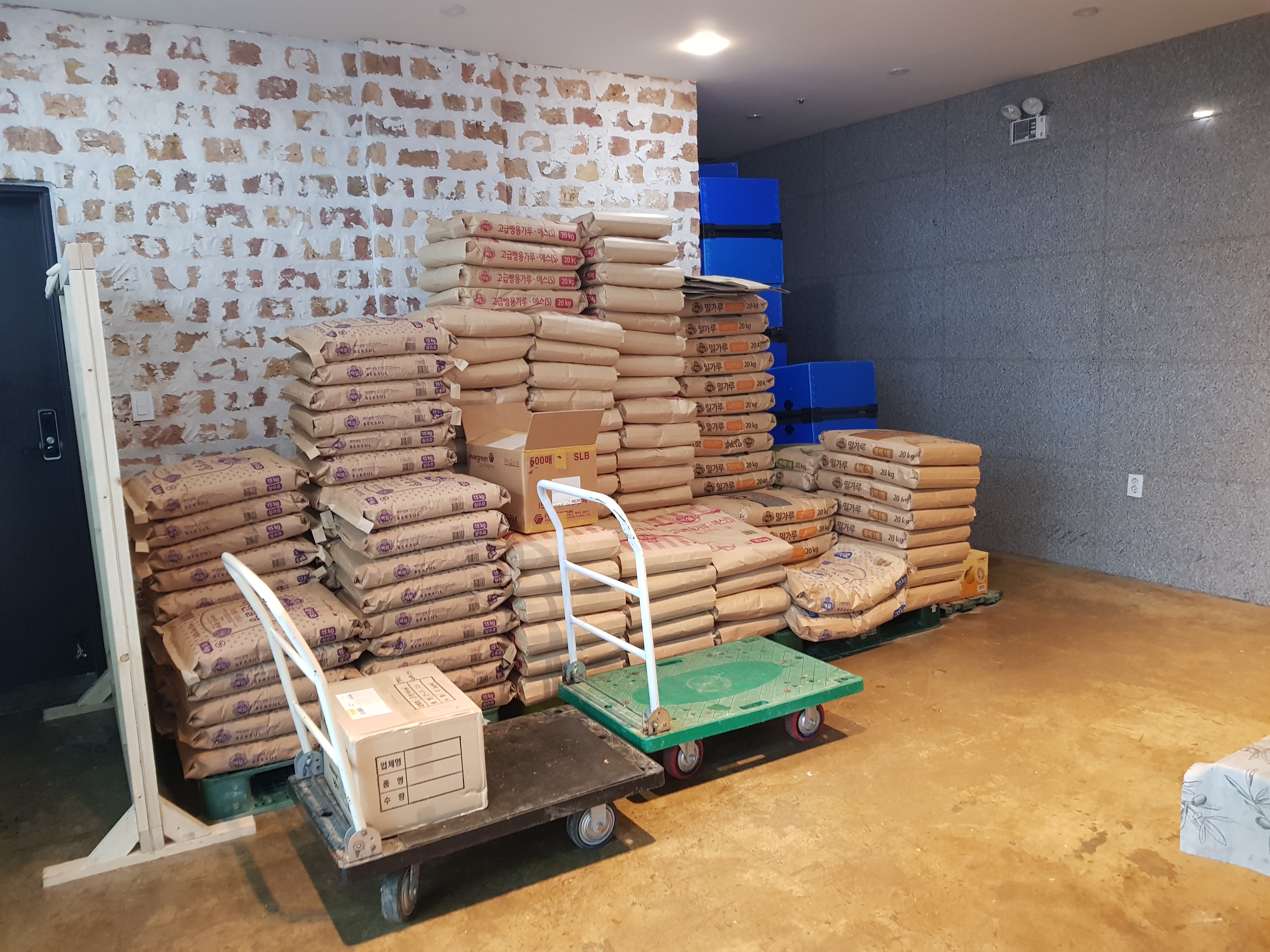 1층 입구에 이렇게 밀가루를 쌓아놨다