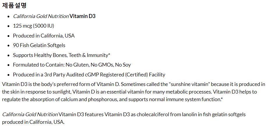 아이허브 비타민D추천 캘리포니아 골드 뉴트리션 (California Gold Nutrition) 비타민D3 5000IU