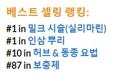 현재 캘리포니아 골드 뉴트리션의 실리마린복합체, 밀크씨슬은 아이허브 밀크시슬(실리마린) 카테고리에서 1위에 랭크되어 있다