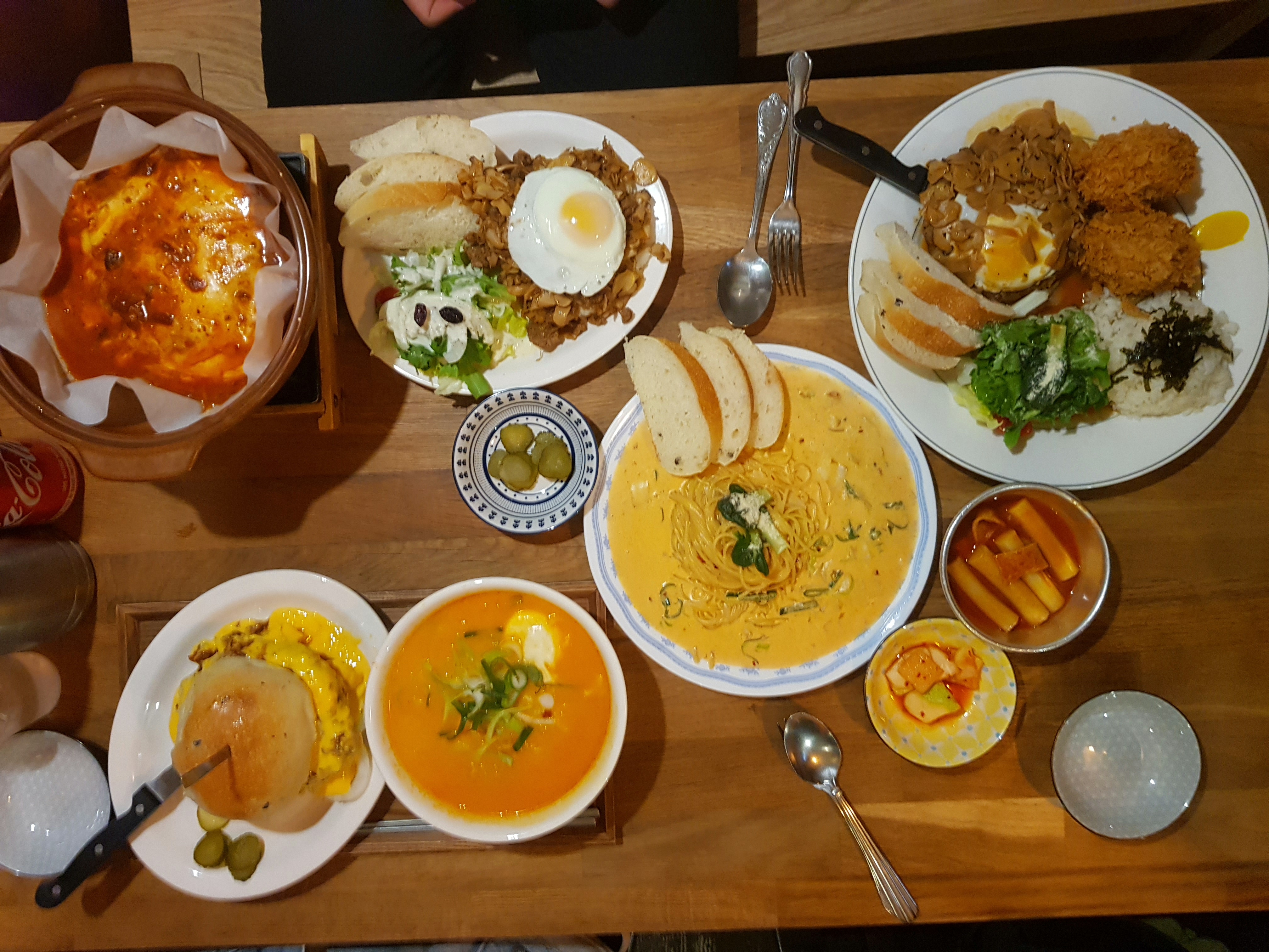 머쉬룸 투움바 파스타, 윤씨 수라상, 윤씨 함박&치즈카츠 정식, 텍스멕스 볼케이노와 소보로덮밥이다.