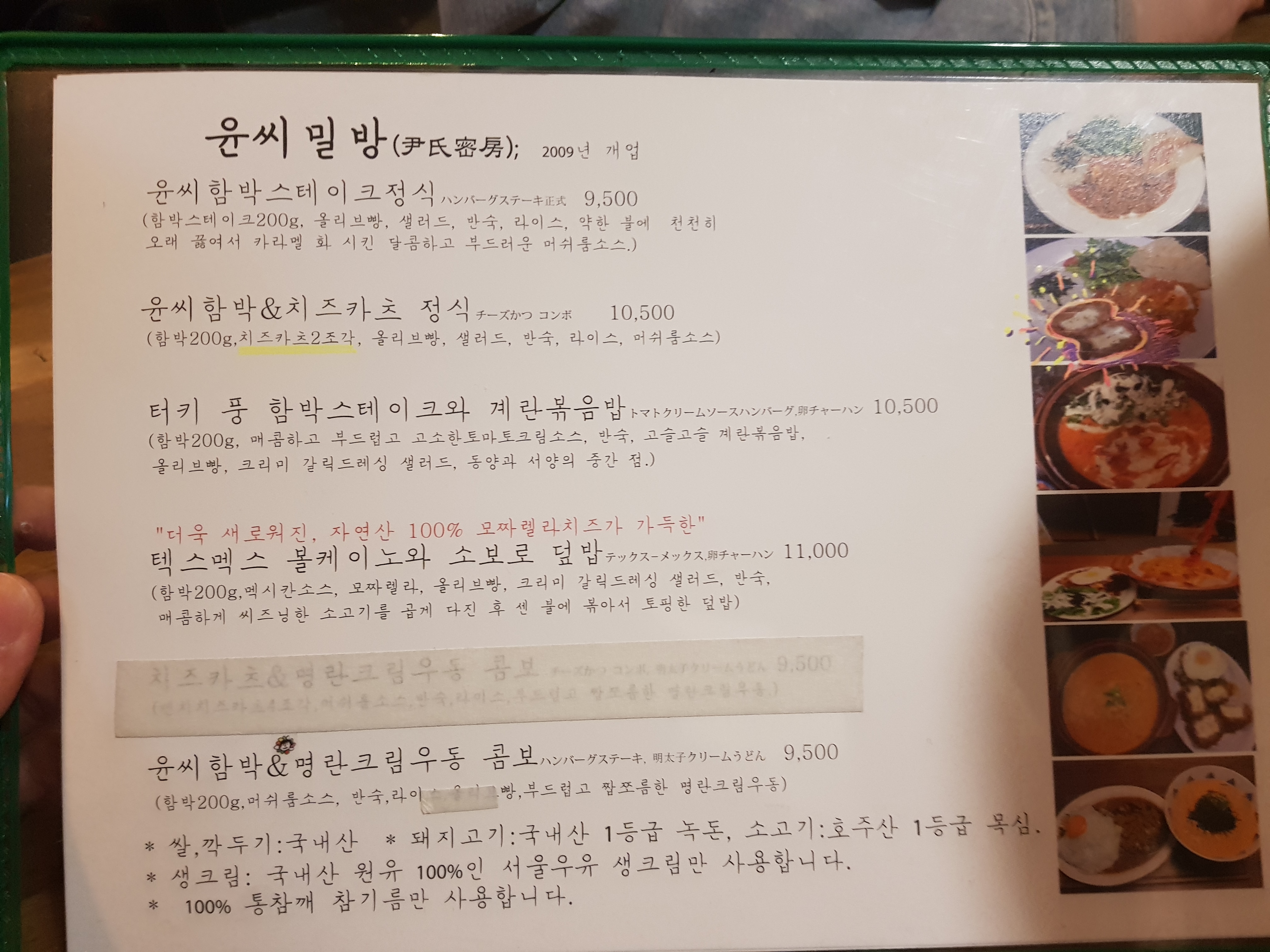 윤씨밀방에서 가장 많이 나가는 메뉴는 함박스테이크라고 한다