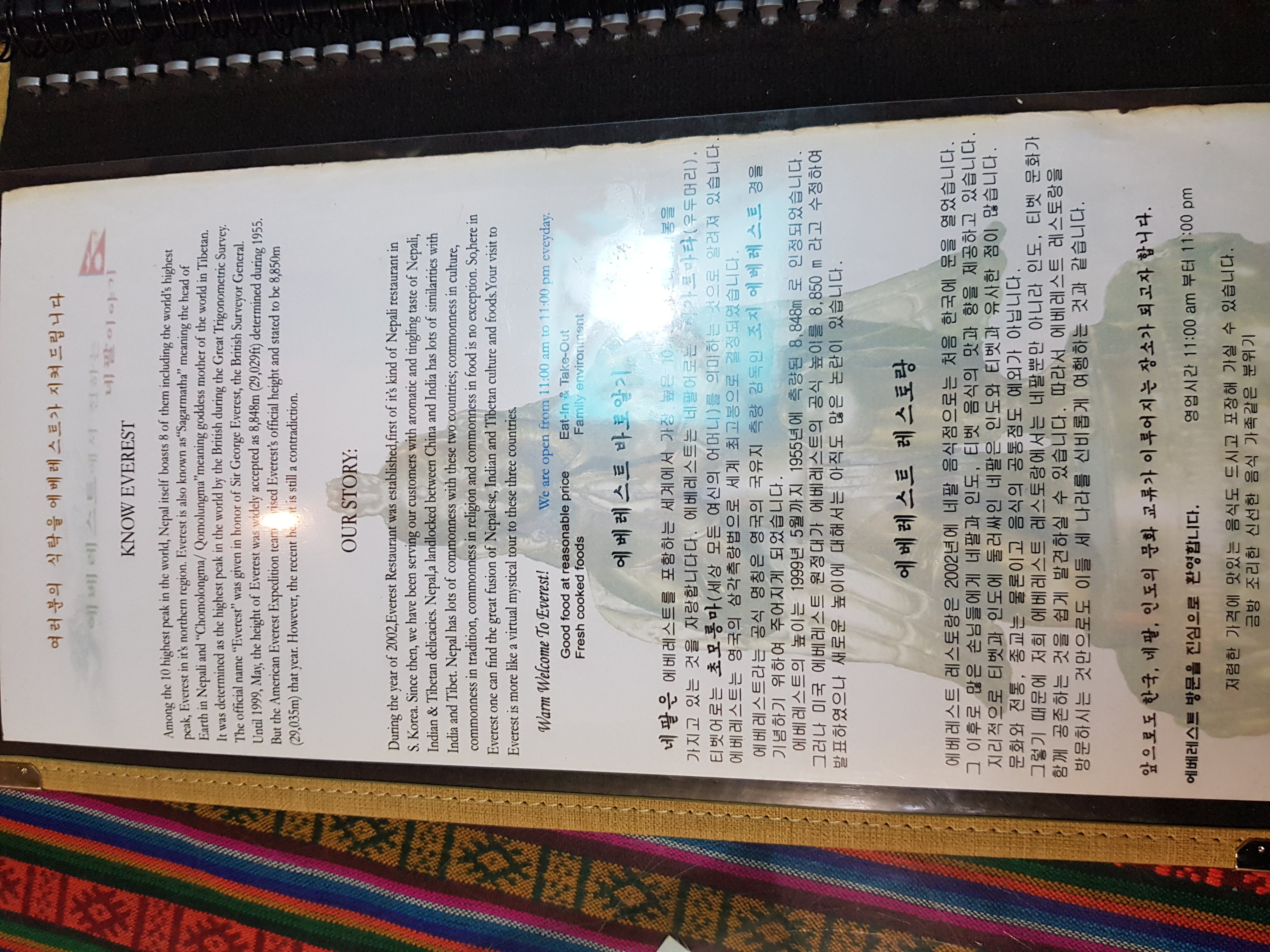 에베레스트레스토랑의 유래와 에베레스트의 뜻도 알수있다
